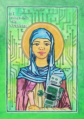 Proto-monastic consecrated virgin, patron saint of robotics, philosophy, and tech ethics.